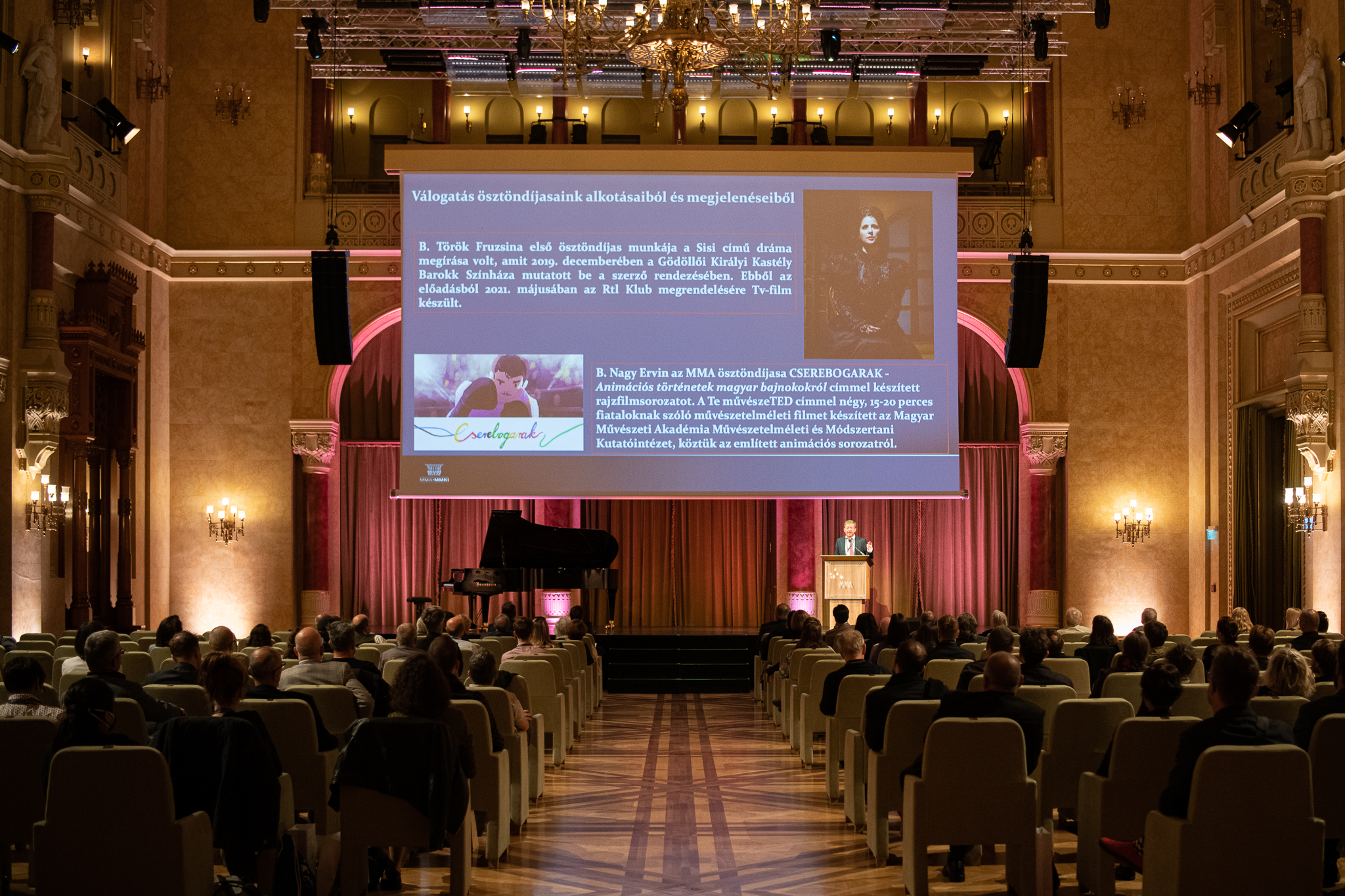 A Magyar Művészeti Akadémia (MMA) Művészeti Ösztöndíjprogramjának immáron negyedik évfolyamát köszöntötték szeptember 20-án a Pesti Vigadó, az MMA székházának Dísztermében. A száz nyertes pályázó és a jelen lévő akadémikusok előtt beszédet mondott Vashegyi György, az MMA elnöke, Kucsera Tamás Gergely, az MMA főtitkára, Kocsis Miklós, az MMA Művészetelméleti és Módszertani Kutatóintézet (MMA MMKI) igazgatója és Takó Sándor, az MMA ösztöndíjasa.