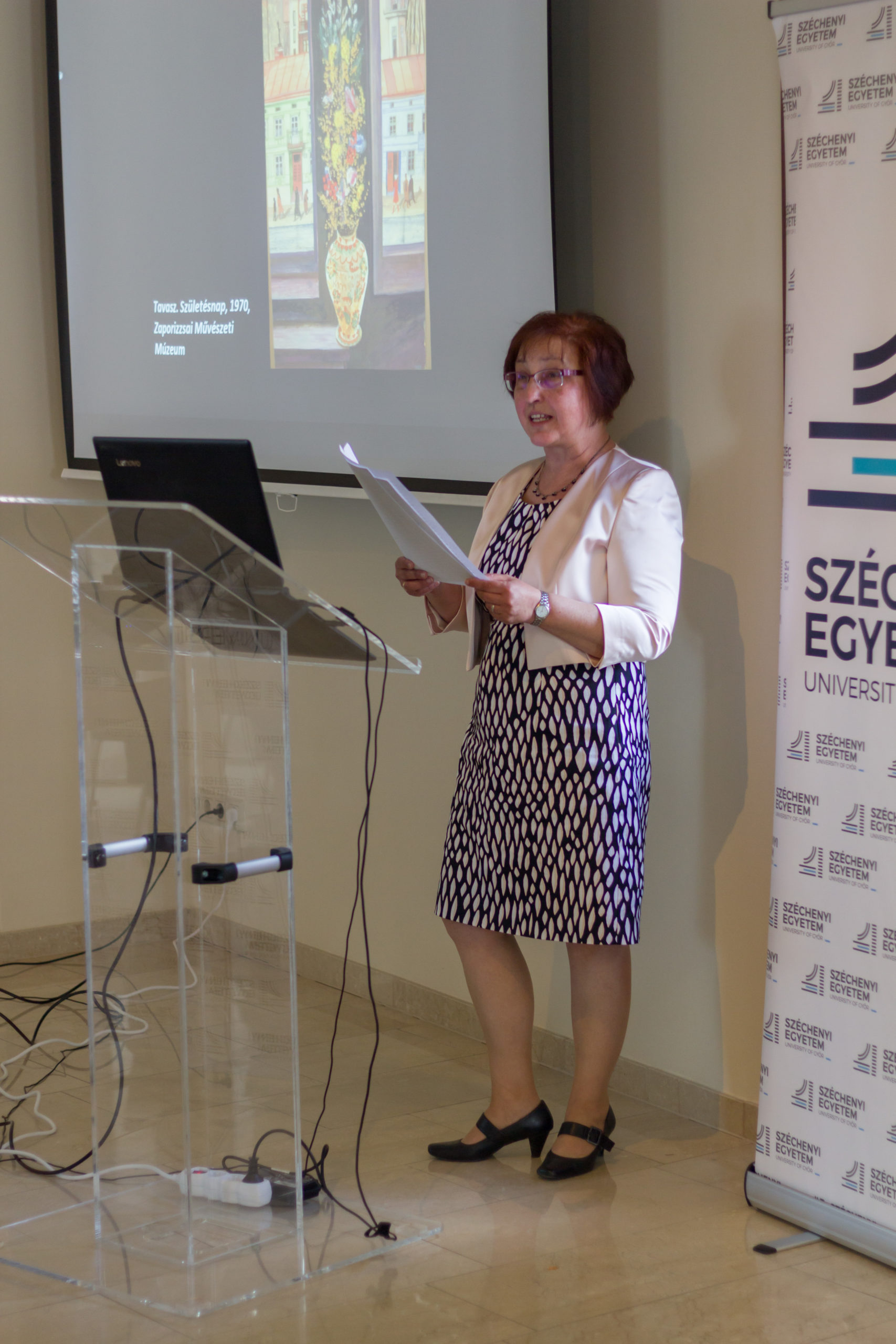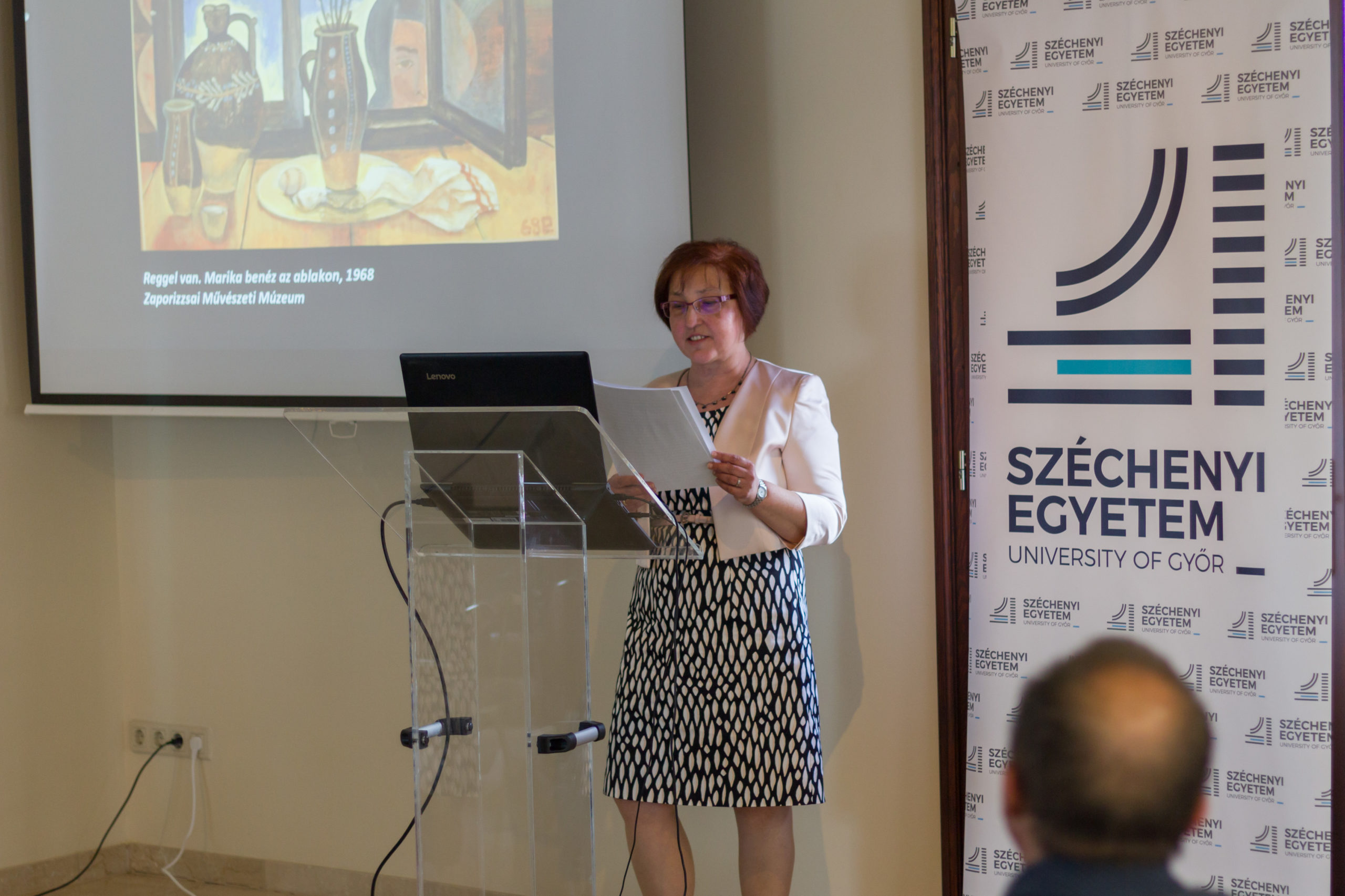 Jankáné Puskás Bernadett, a Nyíregyházi Egyetem tanára az 1960-as évek művészetében gyakran előforduló ablakmotívum jellegzetességeit ismertette. Az ablak a festészet gyakori motívuma, a benti és a kinti valóságot egymástól elhatároló művészeti elem, amely által a bezártság és a szabadság ellentéte sokrétű jelentéssel gazdagodott: az ablak révén létrejön a kapcsolat a kinti szférával, és kitágul a tér. Meglátása szerint kiemelten fontos a művészettörténet szerepe, hiszen az előző generációk tapasztalata nélkül nem létezhet sem innováció, sem a jövő generációja. Hozzátette, a hazai művészet kutatása nem csupán a határokon belülre szorítkozik, azokon túlra is szükséges lenne kiterjeszteni, ehhez azonban mélyebb odafigyelés szükséges.