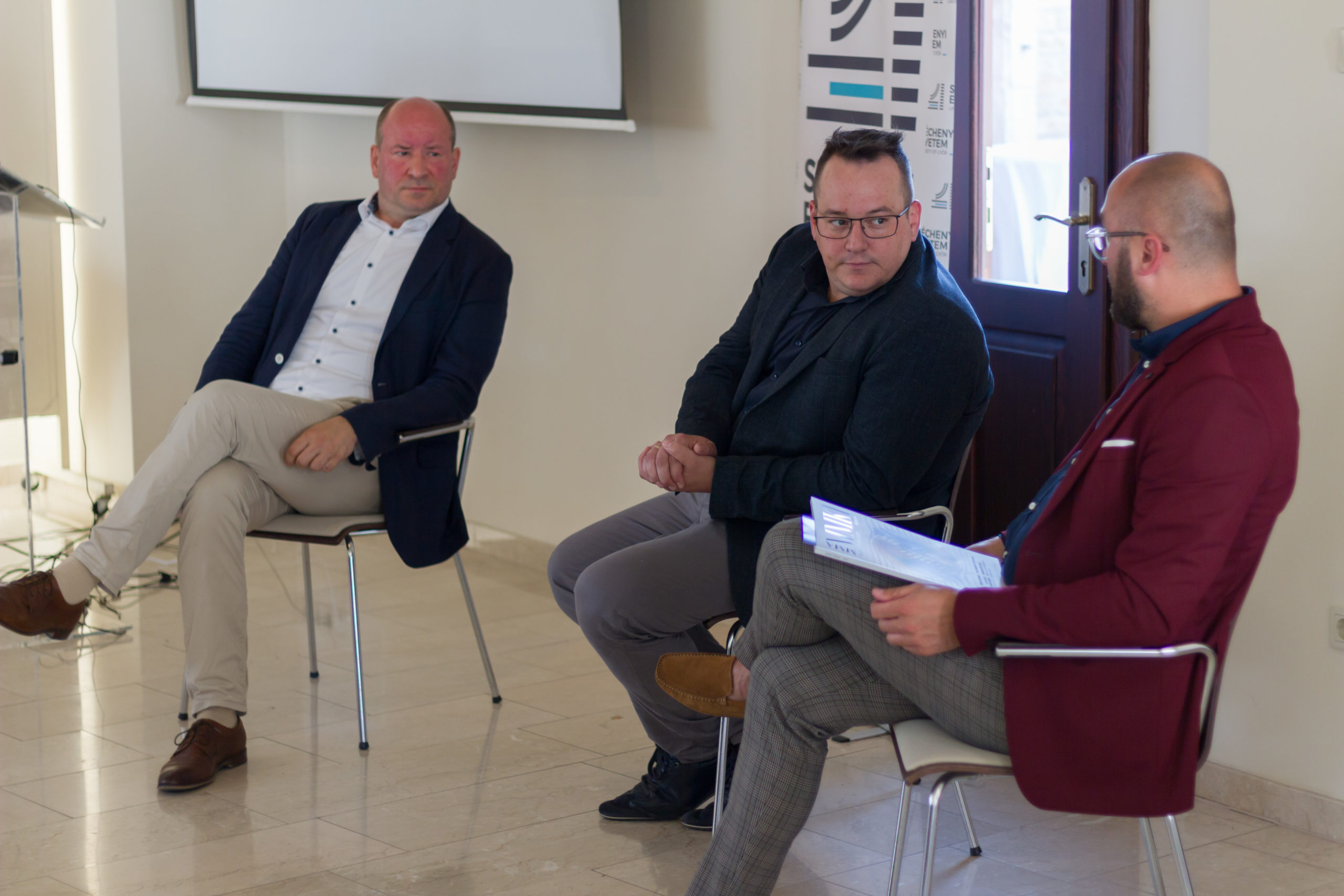 Az egész napos konferenciát kerekasztal-beszélgetés zárta Antal Zsolt vezetésével. A kultúra, a média és az élmény témakörében szervezett beszélgetésben részt vett Fülöp Péter, a Kaposvári Csiky Gergely Színház igazgatója és a Színház- és Filmművészeti Egyetem oktatója, valamint Kiss Domokos Márk, a Déryné Program igazgatója és a Színház- és Filmművészeti Egyetem oktatója. Fülöp Péter kifejtette, miért fontos a szakemberek képzése, hogy látja át a kulturális intézmények szakember-ellátottságát, illetve, hogy szerinte miért van szükség ezekre a képzésekre: „A jelenlegi hazai kulturális élet különböző szintjein csodálatos szakemberek dolgoznak, akikben zsigerileg van meg a tudás, a tapasztalat, másfelől észrevehetünk egy olyan hiátust az utódlásban, amire feltétlenül reflektálni kell. A mai kor megváltozott körülményei között a marketinges és jogi szempontok megkérdőjelezhetetlenül felértékelődtek, ezért be kell hívni a képzésbe olyan potenciális szakembereket, akik elsősorban gyakorlati szempontok alapján tanulnának.” Kiss Domokos Márk meglátása szerint is fontos átadni a tudást, a Déryné Programban éppen ezért elsősorban a fiatalokat igyekeznek megszólítani, a kommunikációs eszközeikben pedig egyfajta „unortodox” metódust választottak, tehát nem csupán megmutatják magukat a közösségi médiában, hanem fő küldetésük, hogy előadásokat vigyenek a vidéki, kultúrával kevésbé áthatott területekre. A beszélgetés során szó esett arról is, hogy miért van szükség marketingszemléletbeli változtatásra, miért nem elég a személyes kontaktus, illetve a koronavírus-járvány kitörése óta milyen változások történtek működésükben és vezetési módszertanukban.