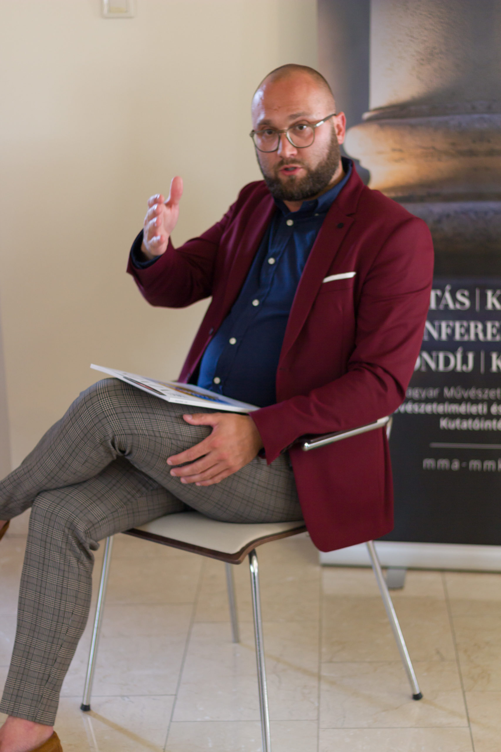 Pálfalusi Zsolt, a Széchenyi István Egyetem Művészeti Kar egyetemi docense azt a problémát járta körbe, hogy miként lett az avantgárd korai időszakában a művészet többé „nem szép művészet”, a forma elsődlegességét miként váltotta fel az anyag, illetve a szépség eszményének örökségébe miként lépett a fenséges. Az előadás célja volt a tánc kiemelése az esztétika jelenségköréből: ha fenomenológia felől közelítjük meg, nem beszélünk többet a művészi táncról és annak történetéről, fel kell függeszteni minden metaforikus értelmezést, emellett nem kérdezünk rá, mit szimbolizál, milyen jeleket hordoz. Elmondása szerint Platón a geometriát hozza fel a művészetekben rejlő hamisság ellen, mivel „a léleknek az a legértékesebb része, amelyik bízik a mértékben és a számolásban”.