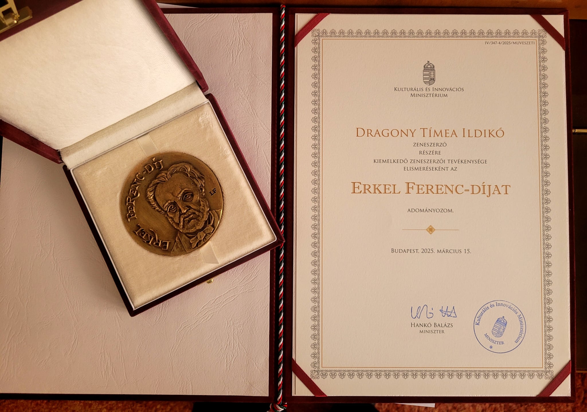 Az állami elismeréseket Hankó Balázs kulturális és innovációs miniszter, Varga-Bajusz Veronika felsőoktatásért, szak- és felnőttképzésért, fiatalokért felelős államtitkárral és Závogyán Magdolna kultúráért felelős államtitkárral közösen adta át csütörtökön a Pesti Vigadóban.
