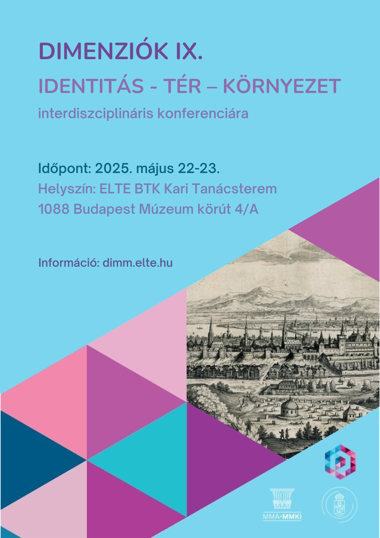 Május 22-én és 23-án Dimenziók IX. – Identitás – Tér – Környezet címmel kétnapos konferenciát szervez az ELTE BTK Dimenziók Interdiszciplináris Művelődéstörténeti Műhely, az ELTE BTK Történeti Intézet Művelődéstörténeti Tanszék, ELTE TTK Földrajz- és Földtudományi Intézet Társadalom és Gazdaságföldrajzi Tanszék és az MMA Művészetelméleti és Módszertani Kutatóintézet.