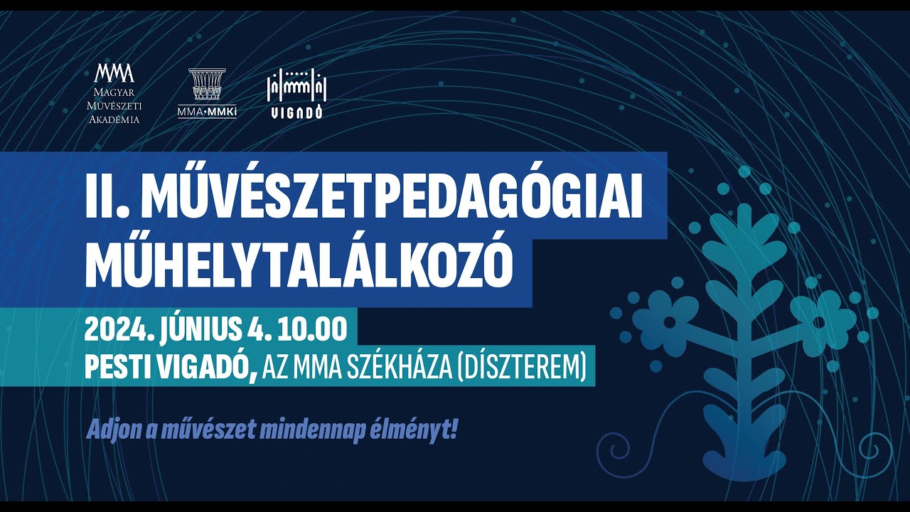 Megtekintés a Youtube-onJúnius 4-én közel száz fő részvételével zajlott le a II. Művészetpedagógiai műhelytalálkozó, a Művészettel Nevelés Hálózat kapcsolatépítő és tudásmegosztó rendezvénye a Pesti Vigadóban, a Magyar Művészeti Akadémia (MMA) székházában. Az eseményt az MMA Művészetelméleti és Módszertani Kutatóintézet (MMA MMKI) szervezte. A műhelytalálkozót a szervezők zárt körben tartották, az MMA tagjain, illetve köztestületi tagjain kívül a művészetpedagógiával foglalkozó MMA-ösztöndíjasok, az akadémia tagozatainak elismerő oklevelével kitüntetett, továbbá a művészettel nevelés területén kiemelkedő tevékenységet végző művészetpedagógusok vettek részt.